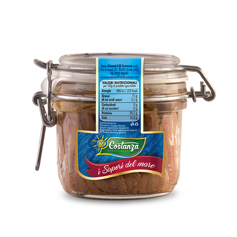 Ingredienti: acciughe, olio di girasole, sale.